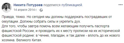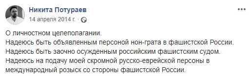 "Решил посмотреть, что писал пять лет назад Никита Потураев – официальный советник президента Володимир Зеленський по политическим вопросам, который требует закрыть оппозиционные СМИ, а вчера предложил переименовать Россию в Московию и Татарию – вместе с русским языком заодно.