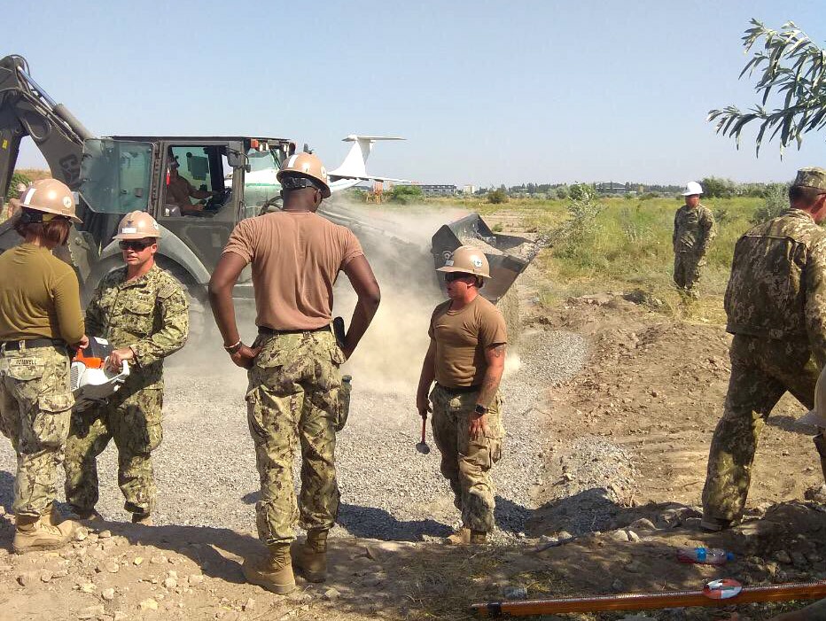В рамках международных военных учений НАТО Sea Breeze-2019 украинские и американские военные провели 11 июля тактико-специальное занятие "Ремонт взлетно-посадочной полосы" после "бомбового удара".