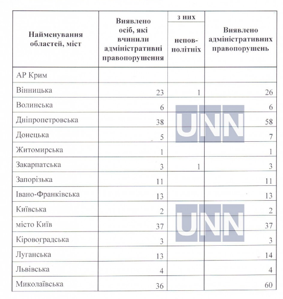 В то же время, в Житомирской области обнаружили одно административное правонарушение, в Киевской области - 2, в Закарпатской, Кировоградской, Сумской области - по 3.