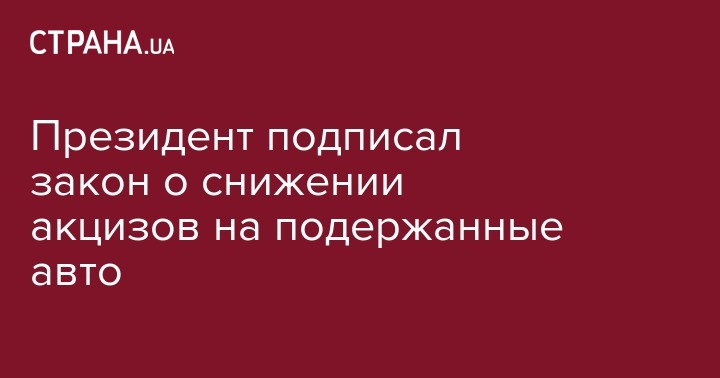 Президент Петр Порошенко 4 июля подписал закон о снижении акцизов на подержанные автомобили. Об этом в своем микроблоге Twitter сообщил пресс-секретарь главы государства Святослав Цеголко.