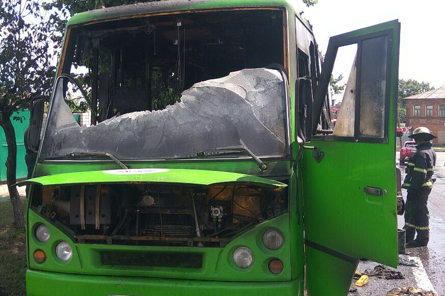 Возгорание моторного отсека авто произошло в субботу, 13 июля, пожар начался во время движения маршрутки № 61 "Центральный рынок - Лысая гора" по ул. Куриловской.