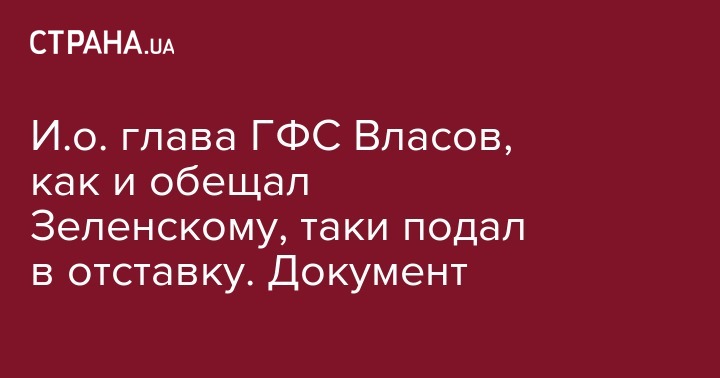 И.о. глава ГФС Власов, как и обещал Зеленскому, таки подал в отставку. Документ