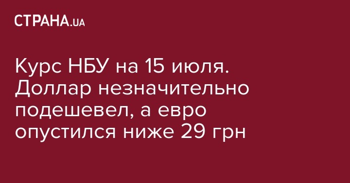 Курс НБУ на 15 июля. Доллар незначительно подешевел, а евро опустился ниже 29 грн