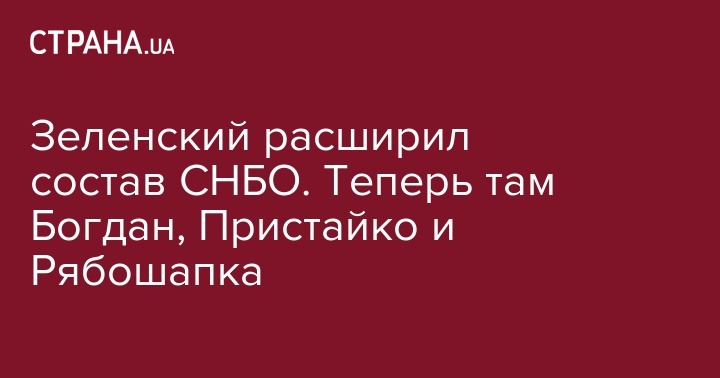 Президент Украины Владимир Зеленский утвердил в персональном составе Совета национальной безопасности и обороны (СНБО) Украины руководителя своего Офиса Андрея Богдана и его заместителей Вадима Пристайко и Руслана Рябошапку. Соответствующий указ под №520/2019 и названием "Об изменениях в составе Совета национальной безопасности и обороны Украины" опубликован на сайте главы государства.