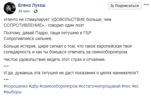 Юрист Елена Лукаш: "Ничто не стимулирует удовольствие больше, чем сопротивление", – говорил один поэт.