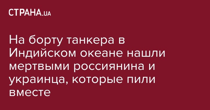 На борту танкера в Индийском океане нашли мертвыми россиянина и украинца, которые пили вместе