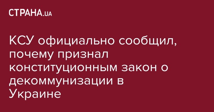 Конституционный суд объявил, что признал конституционным закон о декоммунизации. Соответствующее решение обнародовано на сайте КСУ.