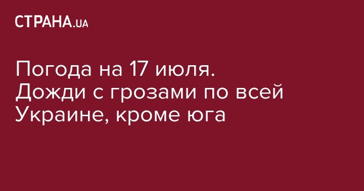 В среду, 17 июля, Украину накроют проливные дожди, местами с грозами, исключение составят лишь южные области, где будет тепло и сухо, пишет сайт Укргидрометцентра.