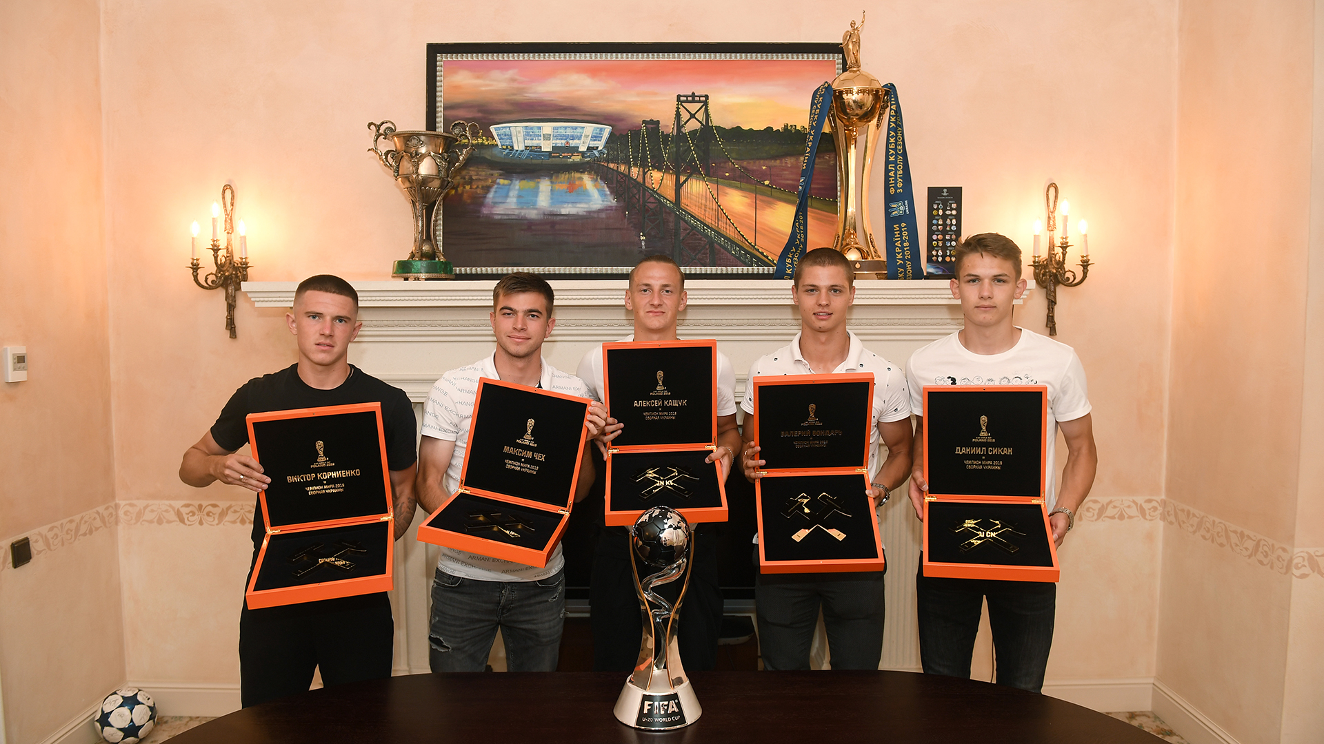 После того, как вчера, 16 июля, президент Украины Владимир Зеленский вручил госнаграды украинским футболистам ставшими чемпионами мира (U20), в донецком Шахтере тоже поздравили с этим триумфом своих игроков - Валерия Бондаря, Виктора Корниенко, Ефима Коноплю, Максима Чеха, Алексея Кащука и Даниила Сикана.