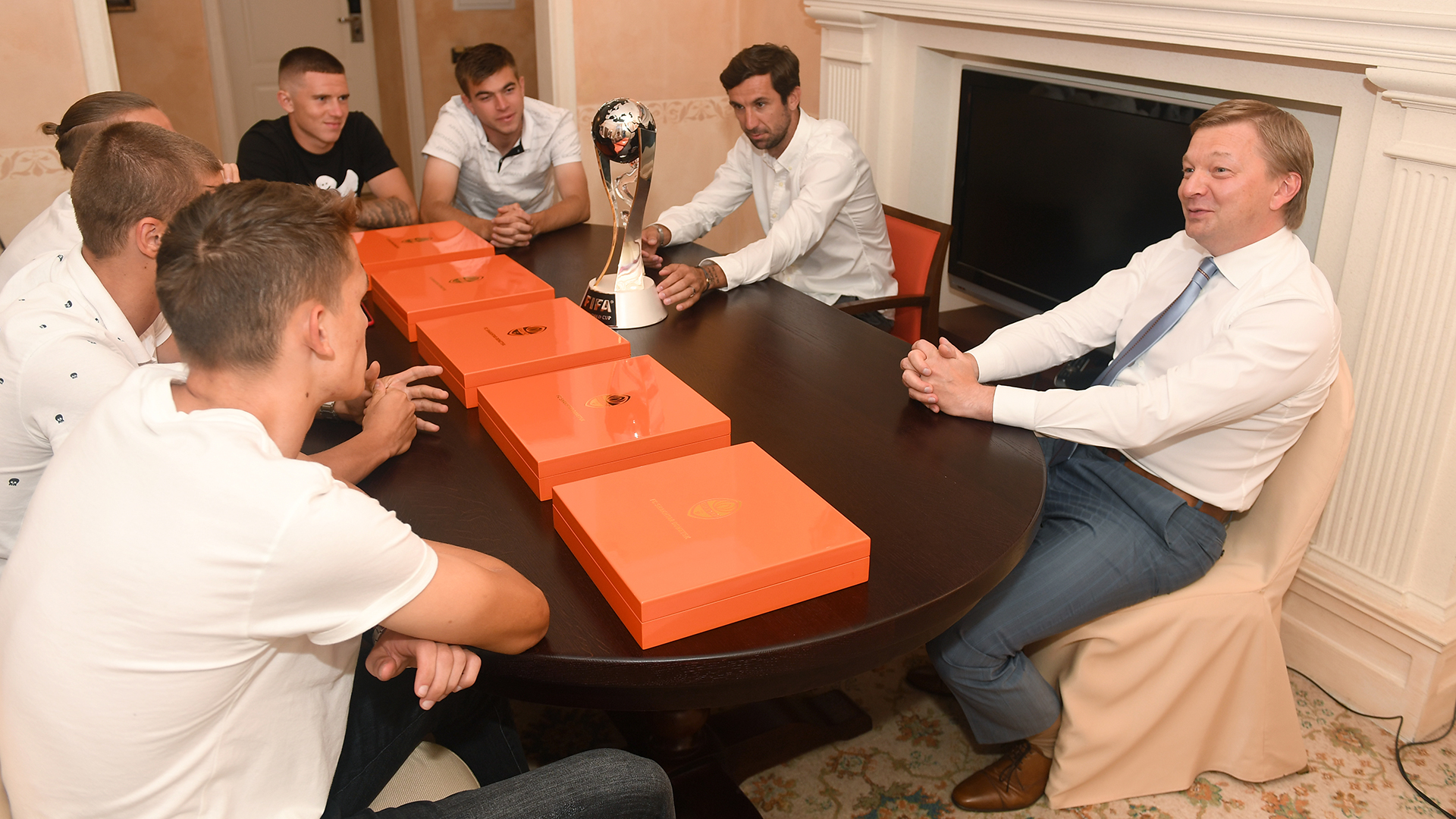 "Очень хорошая встреча с руководством. Присутствовал и тренер Дарио Срна, легенда клуба. Нам, как молодым футболистам, приятно и радостно, что нас отметили и поздравили. Я с детства в донецком Шахтере, и подарки запомнятся на всю жизнь. Это еще и очень мотивирует. Хочется играть в клубе и приносить ему победы", - рассказал Валерий Бондарь, защитник Шахтера и капитан сборной Украины U20.