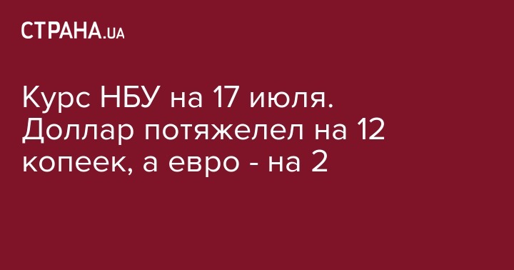 Курс НБУ на 17 июля. Доллар потяжелел на 12 копеек, а евро - на 2