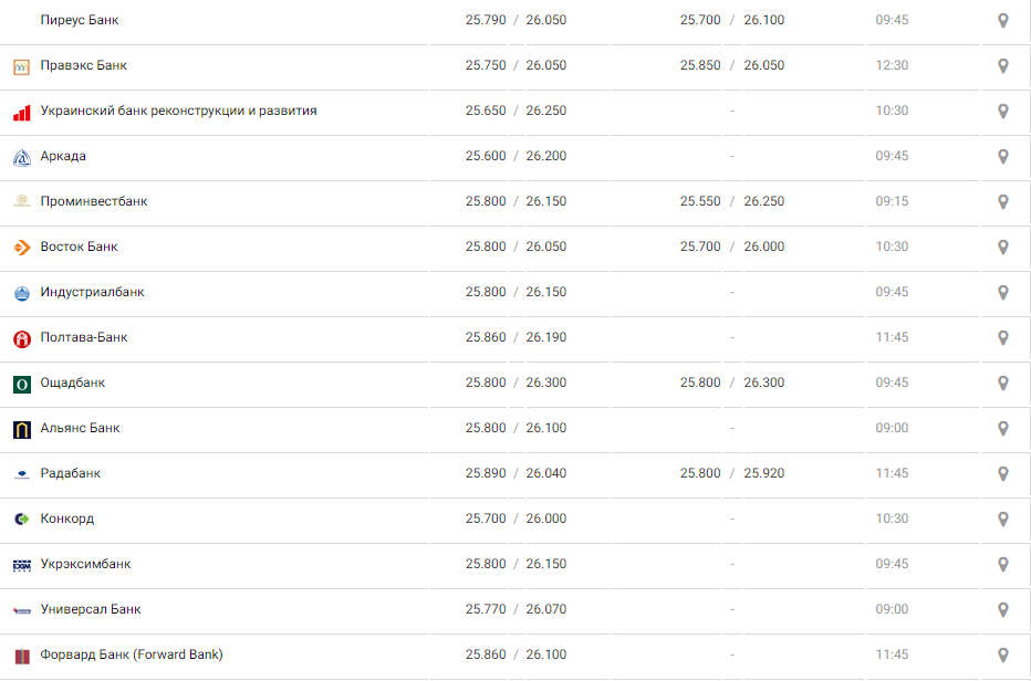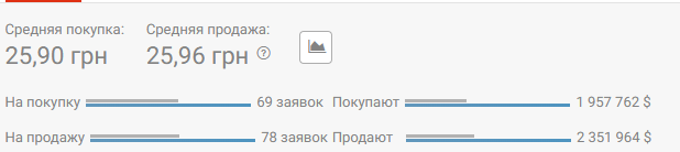 Торги открыли с 10:00. К 12:00 котировки были такие: 25,89 грн (покупка) и до 25,93 (продажа).