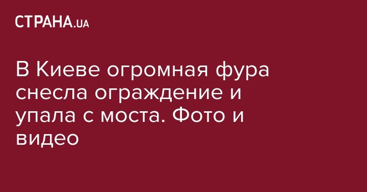 В Киеве огромная фура снесла ограждение и упала с моста. Фото и видео