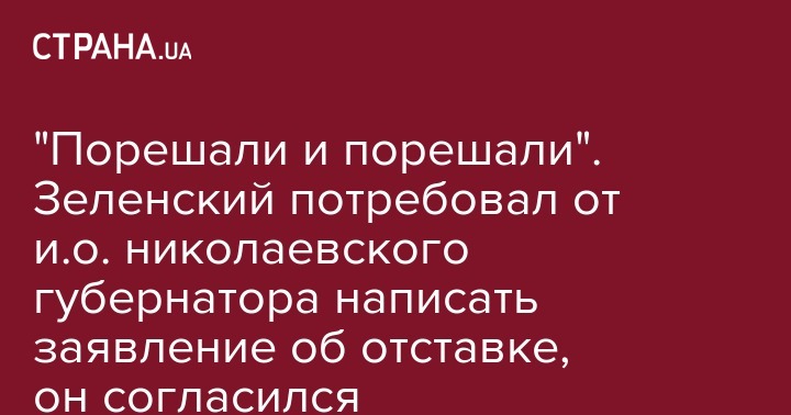 В среду, 17 июля, президент Украины Владимир Зеленский во время рабочего визита в Николаевскую область потребовал отставки исполняющего обязанности главы областной администрации Вячеслава Боня. Об этом пишут "НикВести".