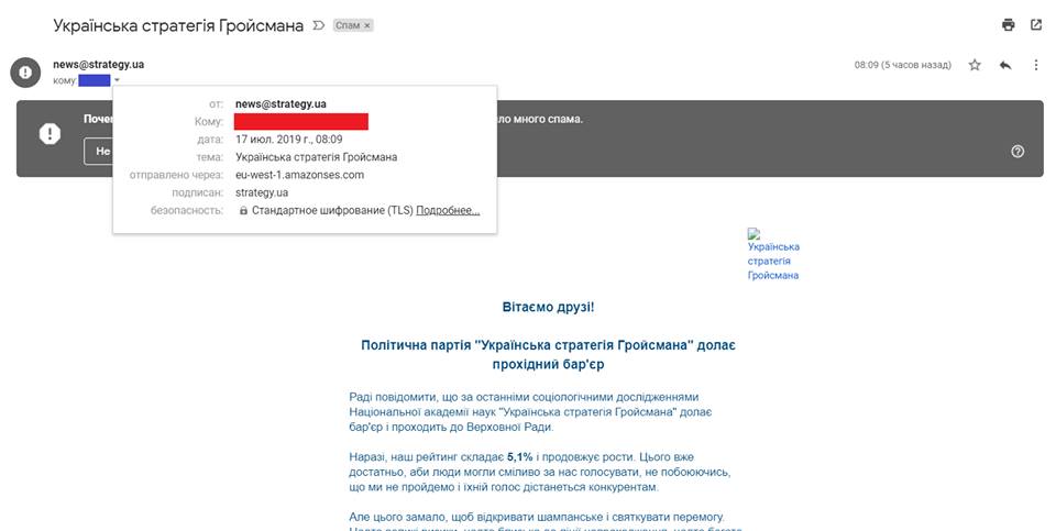 Премьер-министр рекламирует свой политический проект "Украинская стратегия Гройсмана", рассылая спам пользователям защищенного государственного сервиса. Об этом на своем Facebook сообщает сооснователь и управляющий партнер BlockchainLab Тимур Михайловский.