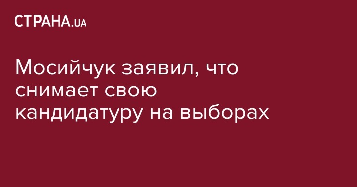 Мосийчук заявил, что снимает свою кандидатуру на выборах