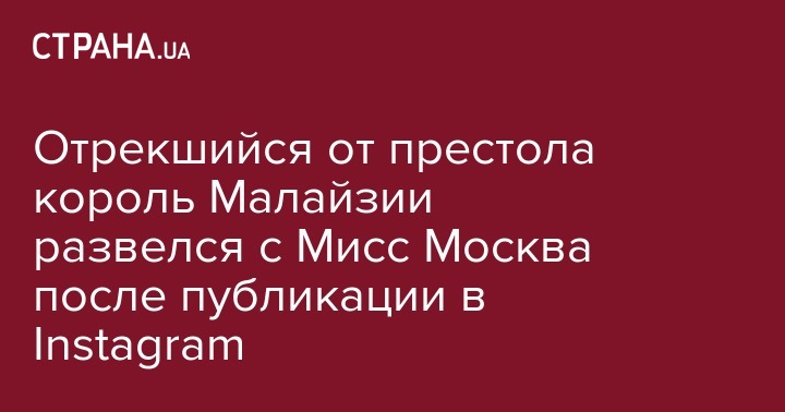 Отрекшийся от престола король Малайзии развелся с Мисс Москва после публикации в Instagram