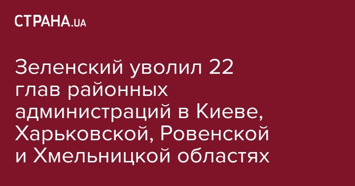 Зеленский уволил 22 глав районных администраций в Киеве, Харьковской, Ровенской и Хмельницкой областях