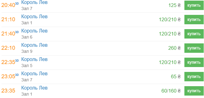 Начало сеансов - с 10:00, окончание - 22:30. Билеты Standard стартуют от 70-100 грн., VIP - 500 грн, сеансы с 19:30 - по 180 грн за билет.