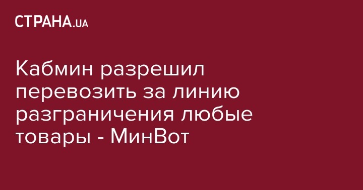 Кабмин разрешил перевозить за линию разграничения любые товары - МинВот