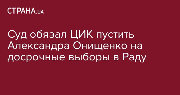 В Шестом апелляционном административном суде обязали Центральную избирательную комиссию зарегистрировать народного депутата Александра Онищенко кандидатом в народные депутаты от Социалистической партии Украины в округе №93 на внеочередных выборах в Верховную Рад, которые состоятся 21 июля. Скан-копия соответствующего решения суда от 17 июля опубликована на сайте slidstvo.info.
