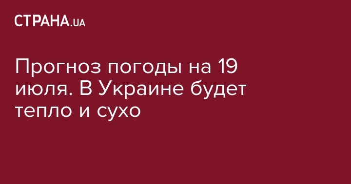 Прогноз погоды на 19 июля. В Украине будет тепло и сухо
