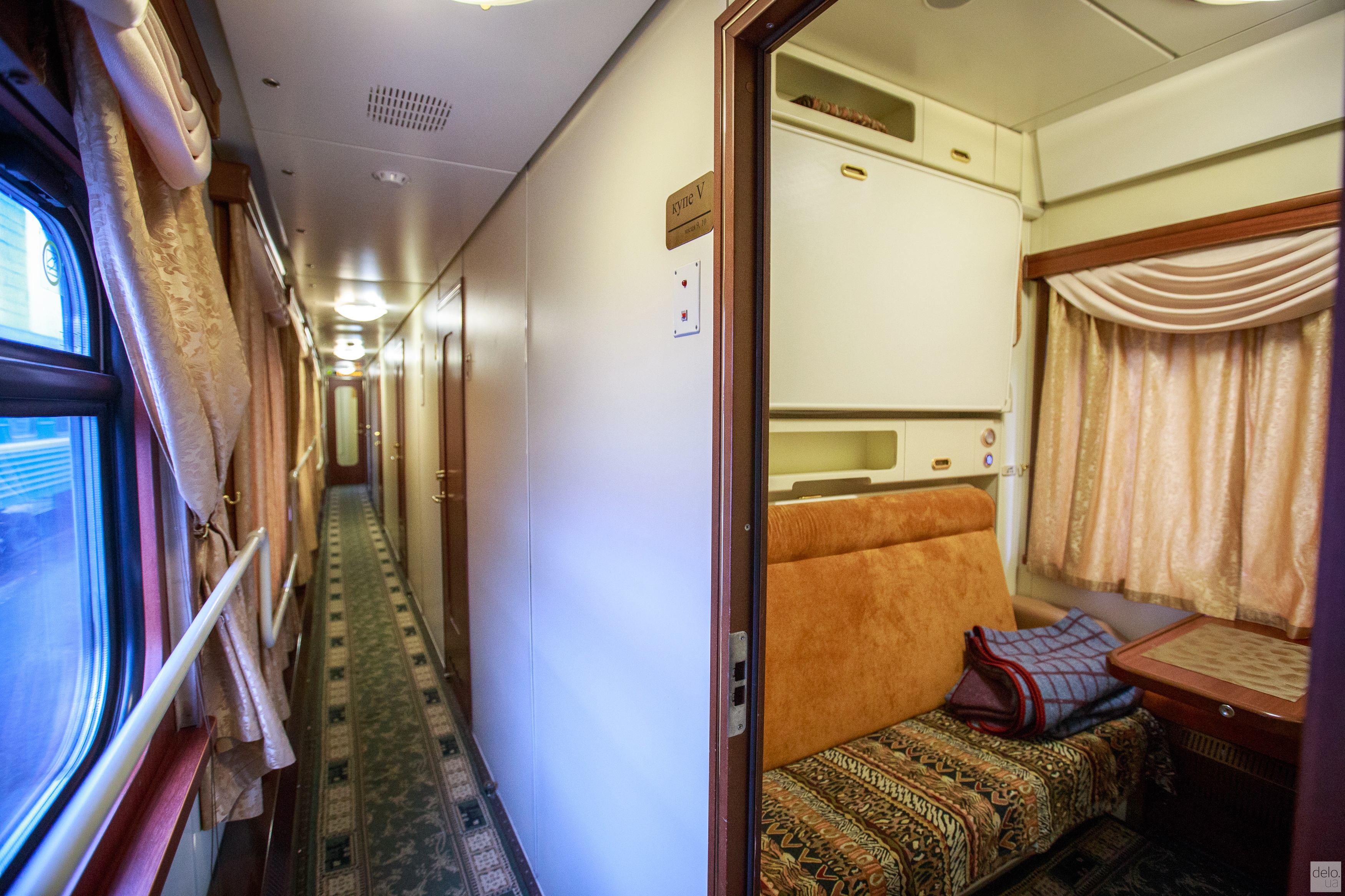 Как сообщается, в вагоне только 6 купе. В каждом из них есть собственный санузел с душем, а также телевизор, сейф и шкаф для одежды. "Каждое из шести двухместных купе оснащено двуспальной кроватью, которую при желании можно трансформировать в диван для сидения, есть откидная верхняя полочка, столик-трансформер, шкаф для одежды, сейф, телевизор и индивидуальная система кондиционирования", - говорится в сообщении.