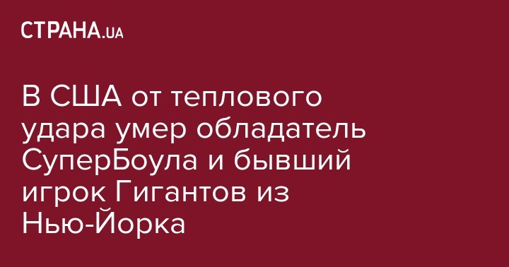 Американский спортсмен, бывший игрок "Нью-Йорк Джайентс" и победитель Супербоула Митч Петрус скончался в возрасте 32 лет от теплового удара, передает Apnews.
