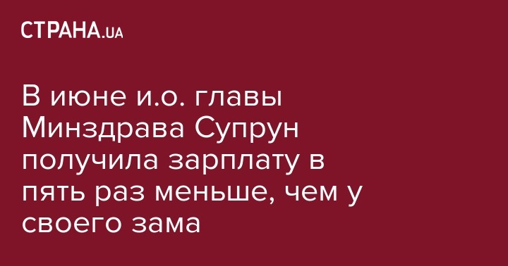 В июне и.о. главы Минздрава Супрун получила зарплату в пять раз меньше, чем у своего зама