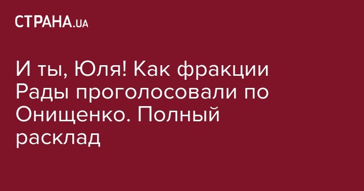 Вот как распределились голоса по фракциям по голосованию за арест. Всего проголосовало 263 депутата. Включая Юлию Тимошенко, которая ранее считалась главным политическим партнером Онищенко (последний, по слухам, спонсировал ее фракцию).