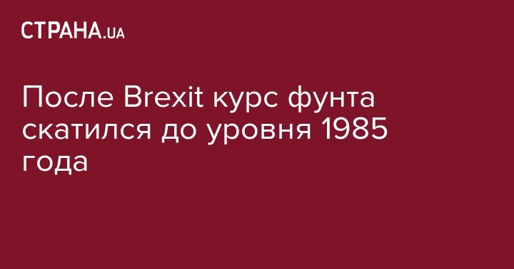 После Brexit национальная валюта Британии фунт стерлинга упала по отношению к доллару до рекордного за последние 31 год уровня. Об этом сообщает Bloomberg.