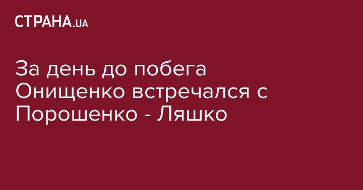 Лидер Радикальной партии Олег Ляшко располагает информацией, что за день до побега из Украины Александр Онищенко встречался с президентом Петром Порошенко. Об этом Олег Ляшко заявил "Стране".