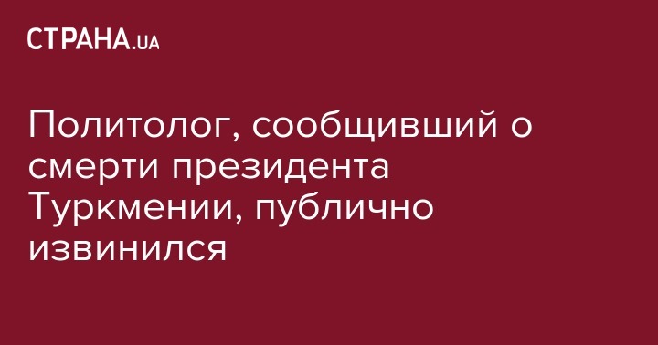 Директор Центра мониторинга евразийских проблем, политолог Аслан Рубаев заявил, что информация о смерти президента Туркменистана Гурбангулы Бердымухамедова не подтвердилась и он приносит по этому проводу свои извинения. Об этом он написал в своем Facebook.
