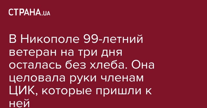 В Никополе 99-летняя пенсионерка три дня провела без хлеба потому что к ней не приходил соцработник. Когда к женщине пришли из ЦИК, та умоляла купить ей хлеба и целовала руки членам комиссии. Новость передает "Nikopolnews" со ссылкой на пост пользователя Facebook Владимира Гордиенко в группе "Типичный Никополь".