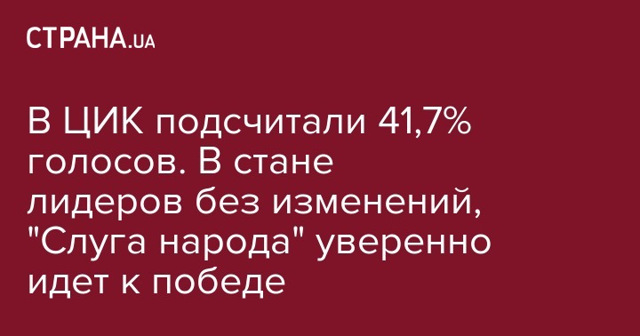 В ЦИК подсчитали 41,7% голосов. В стане лидеров без изменений, "Слуга народа" уверенно идет к победе
