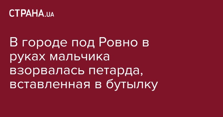 В городе Вараш Ровенской области в руках 12-летнего мальчика взорвалась петарда, которую он поместил в стеклянную бутылку. Об этом говорится в сюжете ТСН.