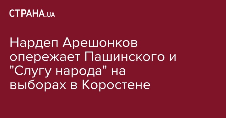 Действующий народный депутат Украины (фракция Блока Петра Порошенко), самовыдвиженец Владимир Арешонков обходит кандидата от "Слуги народа" Вячеслава Сигачева и народного депутата (фракция "Народный фронт") Сергея Пашинского на округе №64 в Житомирской области.