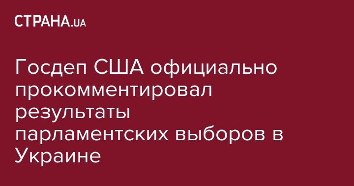 Государственный департамент США поздравил украинский народ с мирным проведением исторических парламентских выборов, которые "дали четкий результат и подчеркнули приверженность украинцев идеалам демократии".