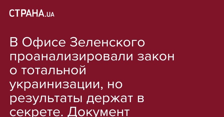 В Офисе Зеленского проанализировали закон о тотальной украинизации, но результаты держат в секрете. Документ