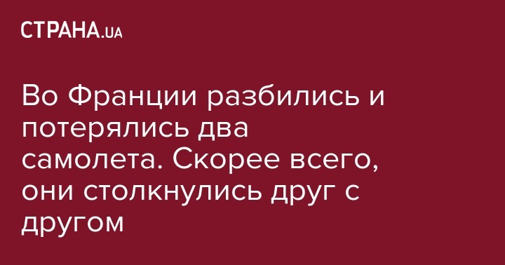В одном из самолетов находились два человека, в другом - только пилот. Их поиски ведутся в горной местности близ границы с Италией, где найдены обломки машин. В поисковой операции задействованы более 20 жандармов и спасателей, вертолет жандармерии.