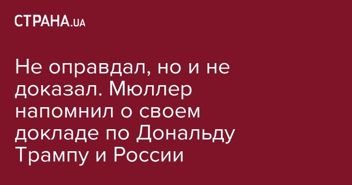 Не оправдал, но и не доказал. Мюллер напомнил о своем докладе по Дональду Трампу и России