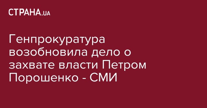 Генпрокуратура возобновила дело о захвате власти Петром Порошенко - СМИ