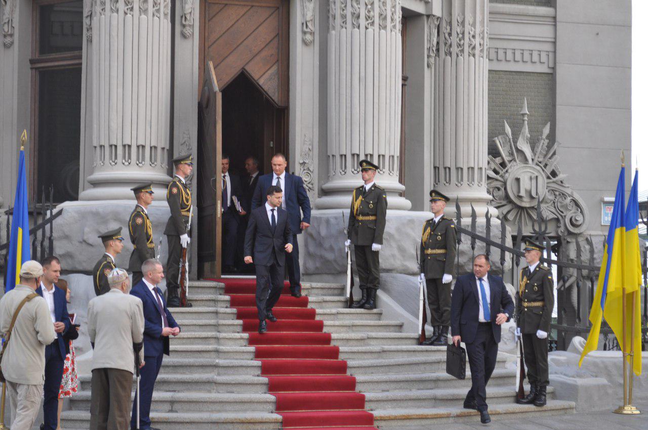 Появились фото президента Украины Владимира Зеленского, который покидает Офис президента после встречи с главами представительств ЕС и НАТО, которая состоялась сегодня, 24 июля.