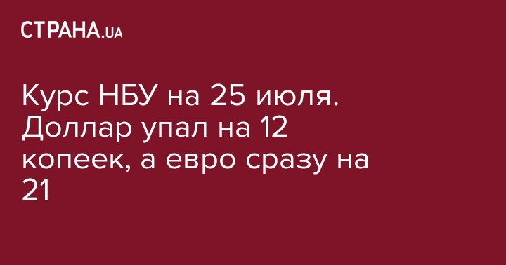 Курс НБУ на 25 июля. Доллар упал на 12 копеек, а евро сразу на 21