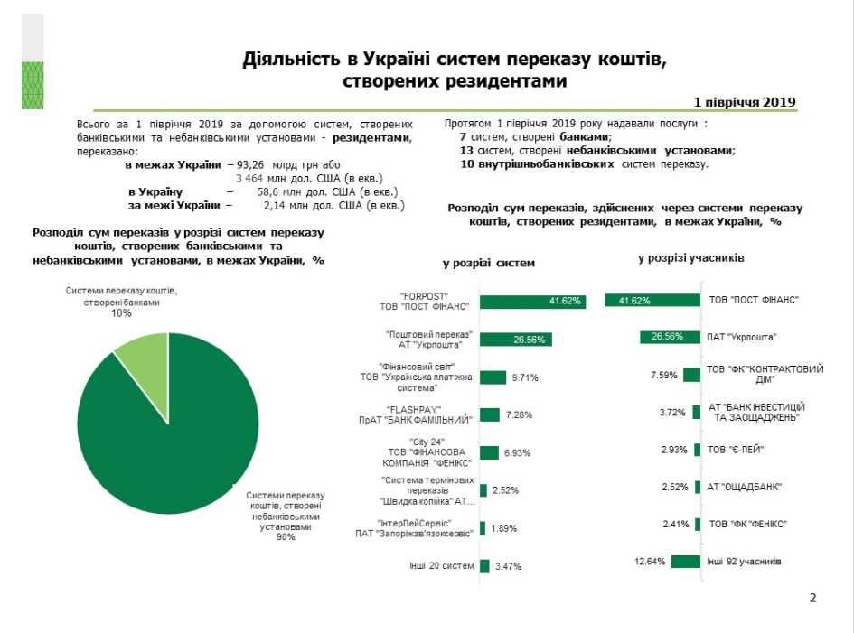 Что касается украинских финансовых учреждений, то здесь лидируют небанковские учреждения, на которые приходится 90% всех переводов.