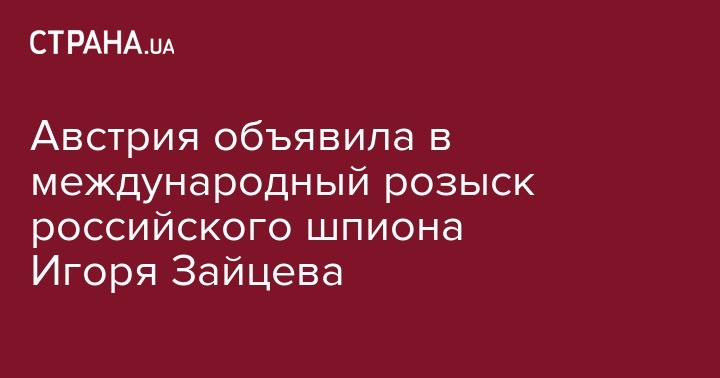 Полиция Австрии объявила в международный розыск гражданина России Игоря Зайцева. Его обоснованно подозревают в том, что он занимался в стране шпионской деятельностью и является агентом Главного разведывательного управления (ГРУ) Генштаба ВС РФ. Так, в частности, Игорь Зайцев осуществил передачу в Москву секретных сведений в ущерб Австрийской Республике.