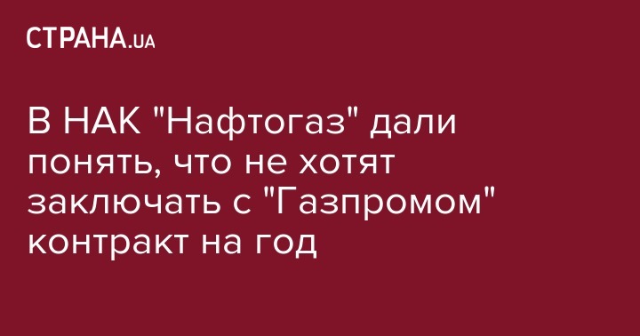 В НАК "Нафтогаз" дали понять, что не хотят заключать с "Газпромом" контракт на год
