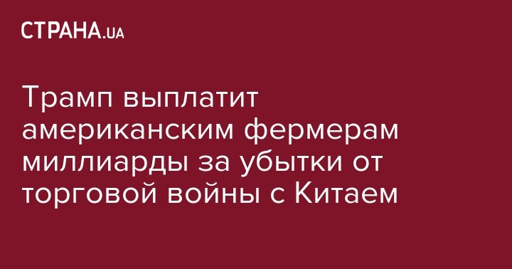 "Правительство Соединенных Штатов выплатит помощь американским фермерам, которые понесли убытки из-за торговой войны с Китаем, в размере от 15 до 150 долларов за гектар. В целом такой пакет помощи составит $16 миллиардов. Фермеры на юге страны получат больше, чем на Среднем Западе", – говорится в сообщении.