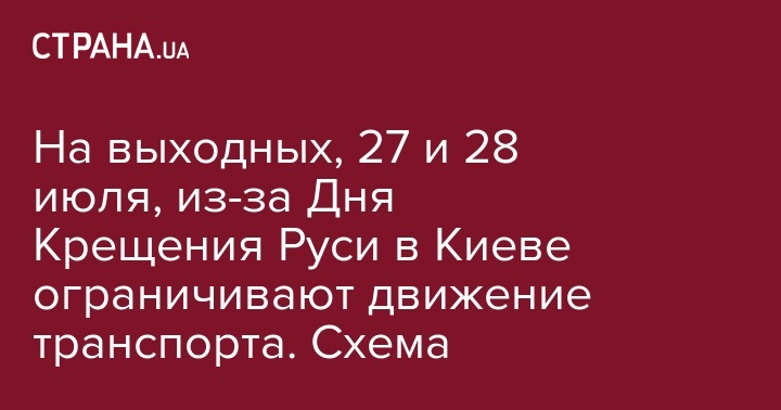 На эти выходные, 27-28 июля, в связи с празднованием Дня Крещения Киевской Руси в Киеве будет ограничено движение транспорта, а маршрутки и троллейбусы изменят маршрут. Об этом говорится в сообщении пресс-службы Киевской городской государственной администрации.