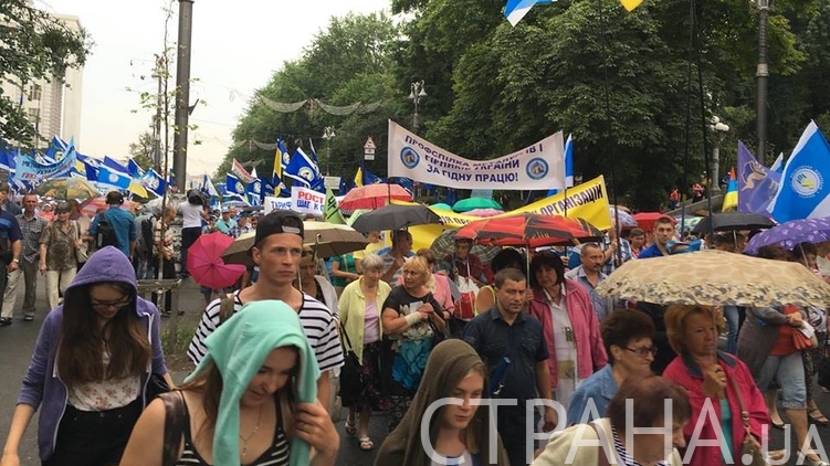 В среду, 6 июля, в Киеве несколько тысяч человек принимают участие во Всеукраинском марше протеста против повышения тарифов на коммуналку. Протестующие направились от парка Шевченко к Кабмину.
